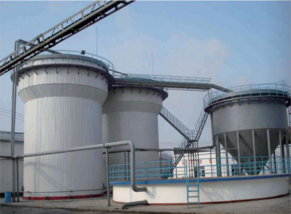 UASB反应器的上部设置气、间、液三相分离挞,下部为污泥悬浮层区和污泥床区,废水由反应器底部均勻泵入污泥床区,与厌氧污泥充分接触反应,有机物被厌氧微生物分解成沼气。液体、气体与固体形成混合液流上升至三相分离器,使三者很好地分离,使80%以上的有机物被转化为沼气,完成废水处理过程。